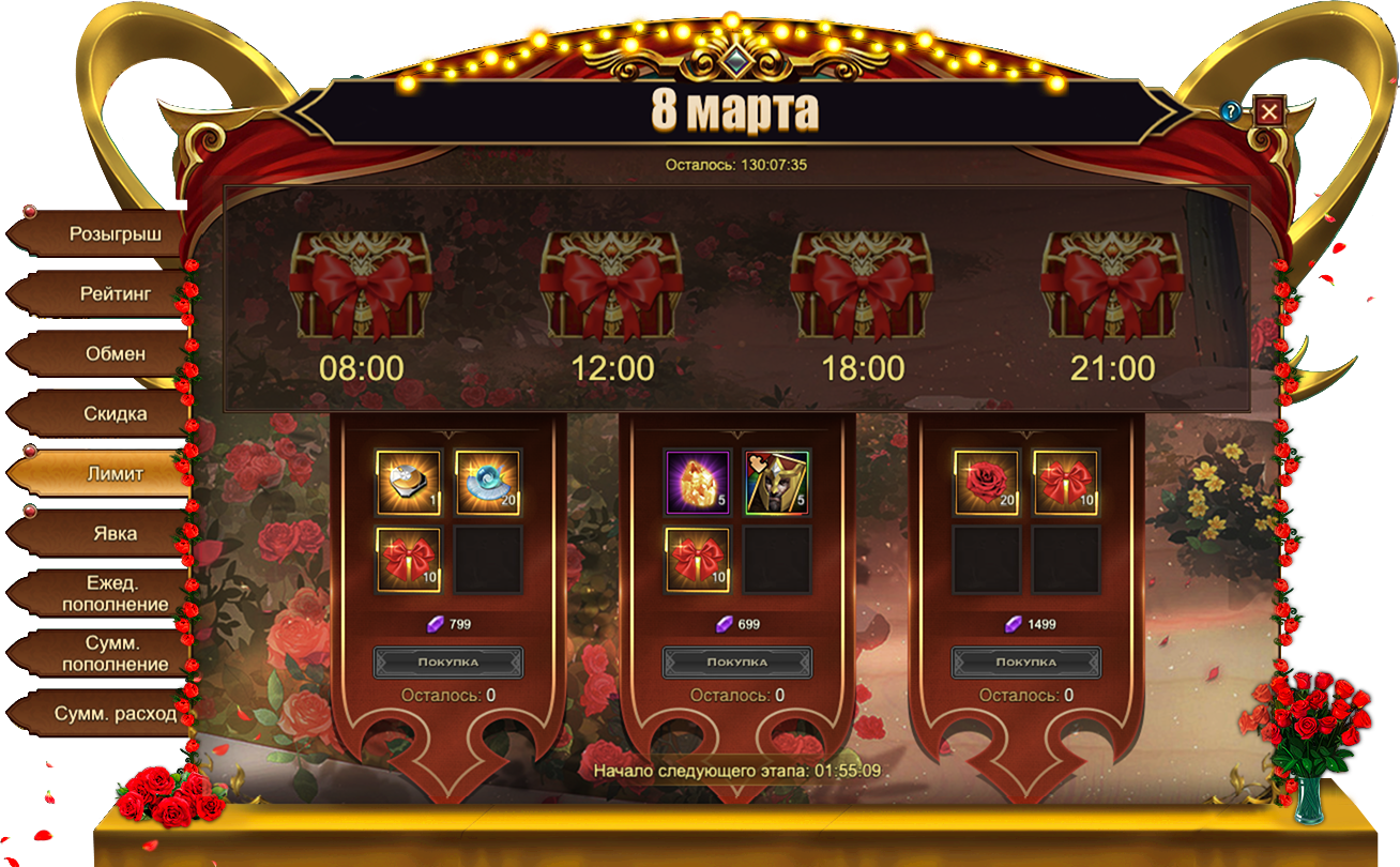 В Eternal Fury Reborn уже запущены новые тематические события — 8 Марта, которые продлятся ровно шесть дней до 10 марта включительно. Дышите полной грудью, наслаждайтесь жизнью и обязательно поздравьте милых дам — от себя лично!
