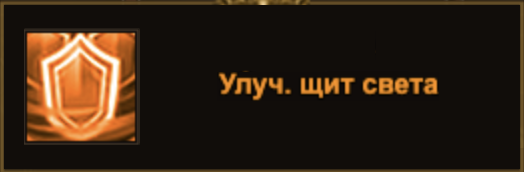 Пассивный бонус за Наряд Святости — Улучшенный щит света. Увеличивает эффект щита на 50%.