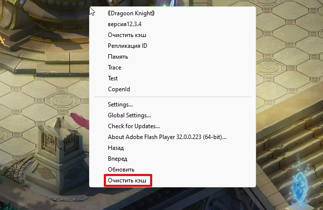Данный способ очистки кэша актуален для официального игрового клиента CreaGames. В других игровых клиентах или браузерах очистка кэша может производиться иначе, за более подробной информацией вы можете обратиться в техподдержку такого игрового клиента или браузера.