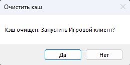 Все запущенные копии игрового клиента будут закрыты. После завершения очистки кэша появится следующее окно: