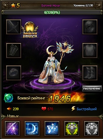Начальное количество звезд рекрута / максимально доступный уровень: 5 звезд / 130 уровень.