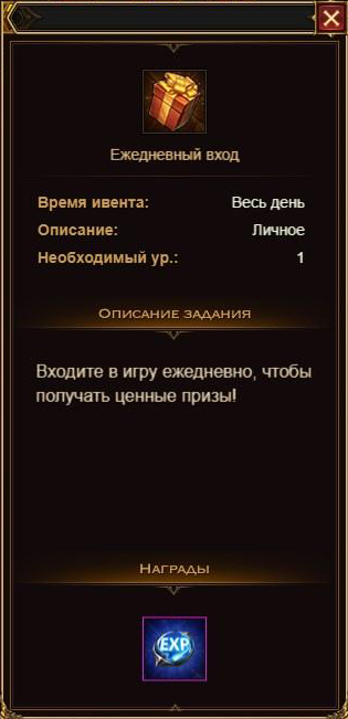 Ежедневный вход 1/1 +5 очков +73000 опыта