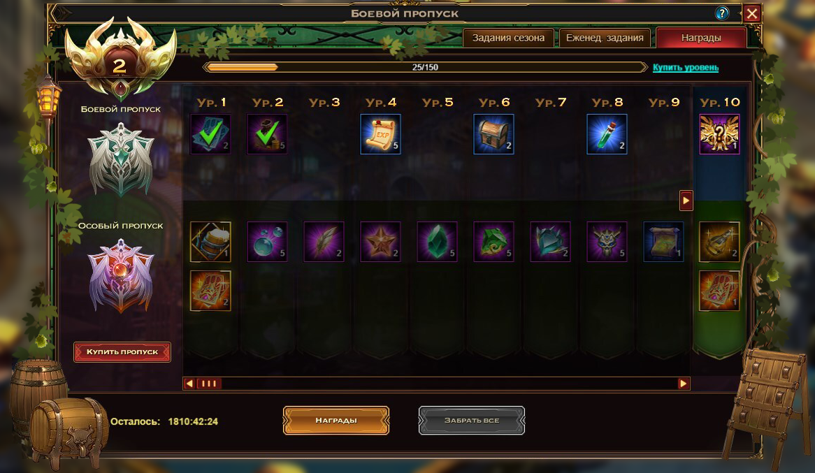 Если вдруг вы не успеваете выполнить нужное количество заданий, но хотите получить определенную награду, всегда можно приобрести необходимое количество уровней сезонного прогресса по цене в 100 аметистов за уровень.