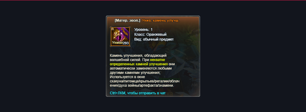 В качестве расходного материала также можно использовать Универсальный камень улучшения, который заменяет основной ресурс практически во всех функционалах в обзоре «Героя». Функция автоулучшения позволяет использовать все имеющиеся в наличи материалы (включая Универсальный камень улучшения). Если у вас закончились ресурсы, можно воспользоваться автопокупкой за фианиты (при этом, конечно, они должны быть в наличии).