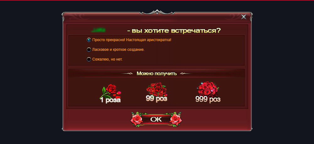 Будьте внимательны, для возможности подарить букет из 999 роз необходимо иметь VIP1. Для 1 розы и букетов из 99 роз таких требований нет. Цветы можно купить в магазине за алмазы, получить в игровых событиях, а также выиграть в конкурсах, которые проводятся на нашем форуме и в сообществе ВКонтакте.