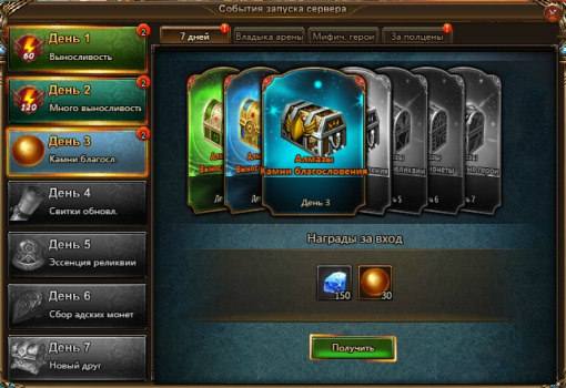 За вход в игру ежедневно игрок получает разные награды, например, алмазы и выносливость.