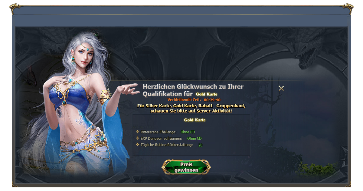 Zuerst am ersten Level werden Sie kostenlose Silber karte und Gold Karte bekommen für 30 Minuten.