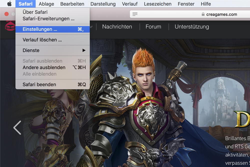 2. Gehen Sie zum Safari Menü und wählen Einstellungen aus.