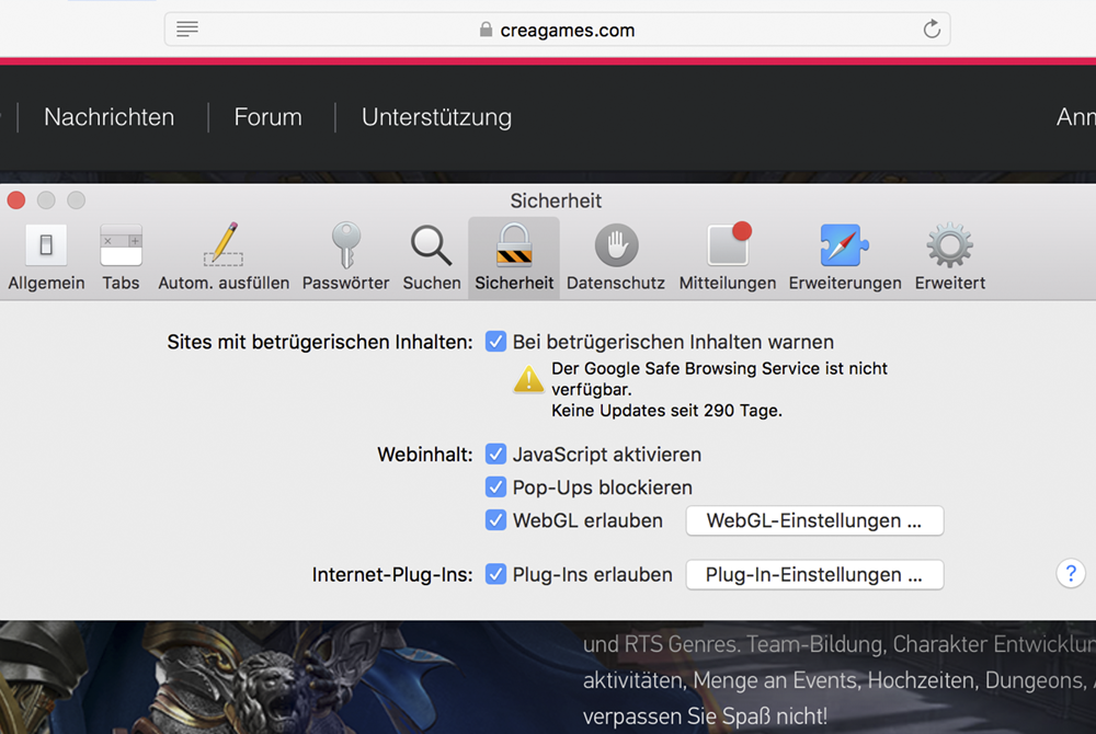 4. Aktivieren Sie die Kontrollkästchen neben "JavaScript aktivieren" und "Plug-ins zulassen"