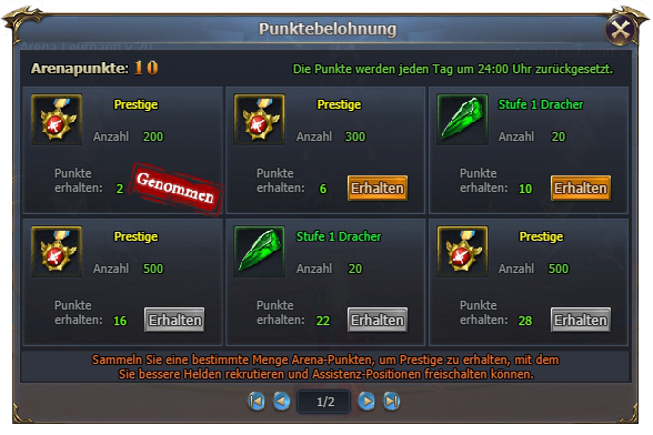 Jeder Sieg erhoht Ihre Arena-Ranking und gibt 1 oder 2 Arenapunkte.