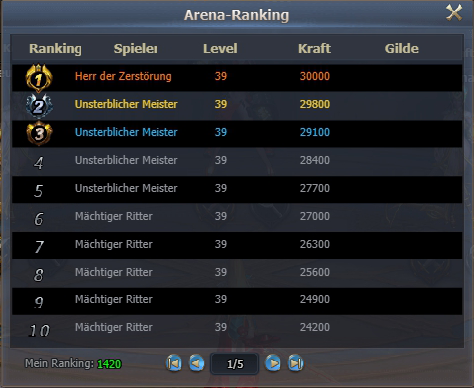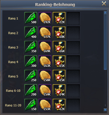 Höher Arena-Ranking Platz - besser Belohnungen: