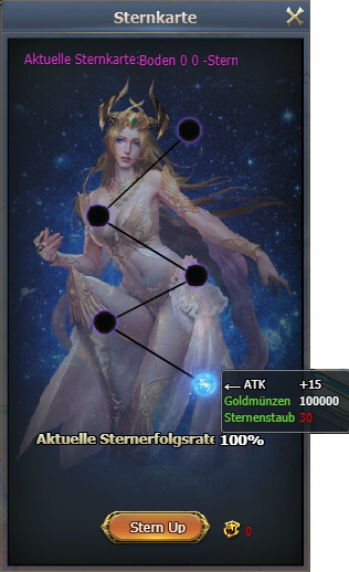 In Sternkarte Tab kann man Eigenschaften der Gruppe für Gold und Sterndust verbessern. Sie können auch Saphiren nutzen um Stern Erfolgsrate zu erhöhen.