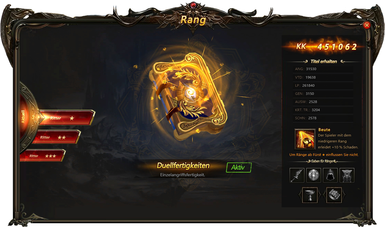 “Rang” Funktion ist ab Level 24 verfügbar. Um Rang Tab zu aktivieren können Sie “Rang” Icon oder Taste “Z” klicken.
