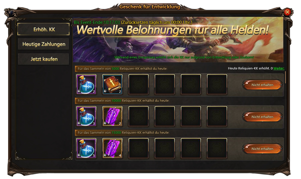 Beachten Sie, bitte - Belohnungen für Entwicklungs Events werden via im-Spiel post nach 00:00 gesendet.