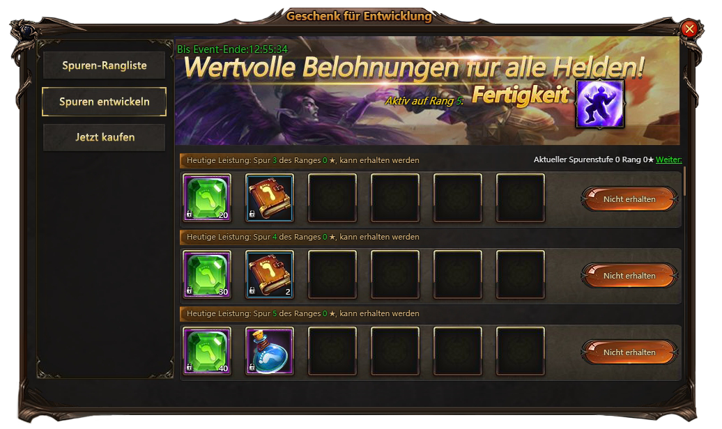Im Rangliste Tab kann man Entwicklung Rangliste sehen und Belohnungen für Rangliste Platz bekommen.