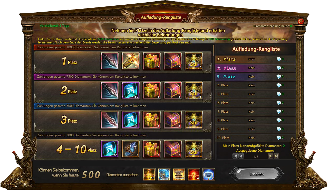 Aufladung Rangliste Event - bekommen Sie Geschenke, wenn bekommen Sie Diamanten!