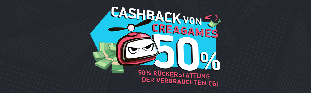 Wir starten 50% Cashback mit CreaGames Aktion!