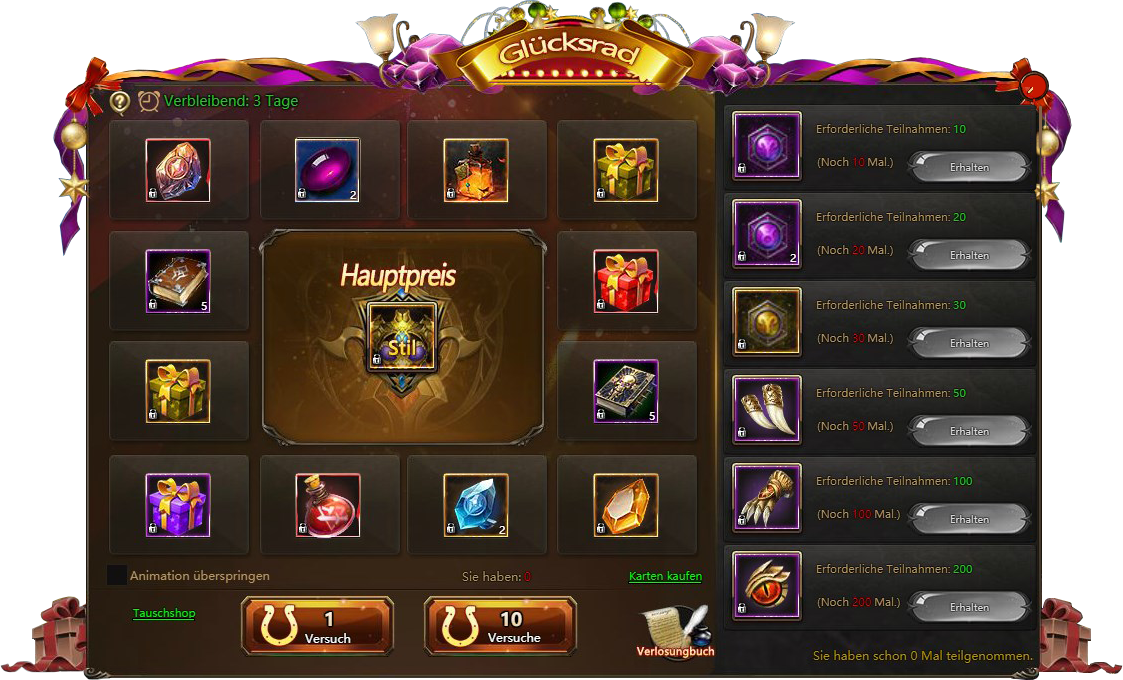 Beachten Sie, dass die tatsächlichen Elemente von Events von den Screenshots abweichen können. Bitte überprüfen Sie Events im Spiel, bevor Sie sie verwenden.