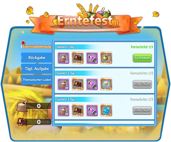 Loggen Sie sich in das Spiel ein, erhalten Sie Geschenke zum Anmelden und Nachfüllen, erledigen Sie tägliche Aufgaben und sammeln Sie eine komplette Sammlung.