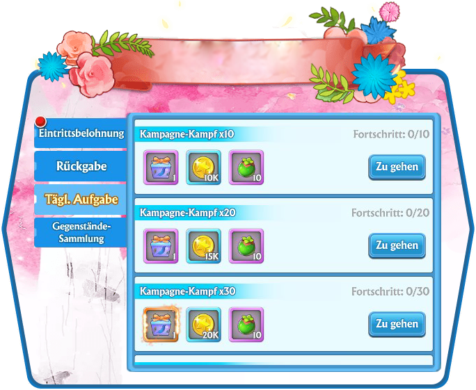 Tägl. Aufgabe - schließen Sie Quests ab und erhalten wertvolle Dinge.