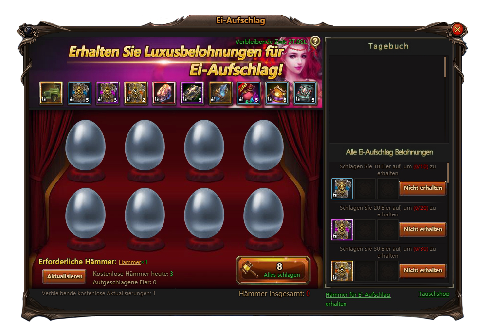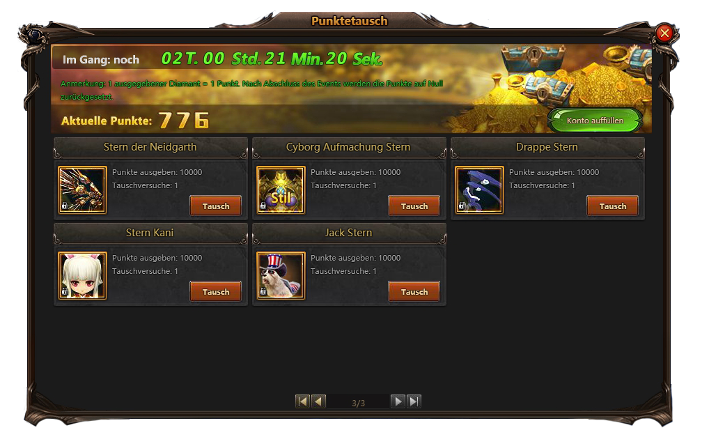 Punktetausch Event - wenden Sie Diamanten auf und bekommen verschiedene Preise.
