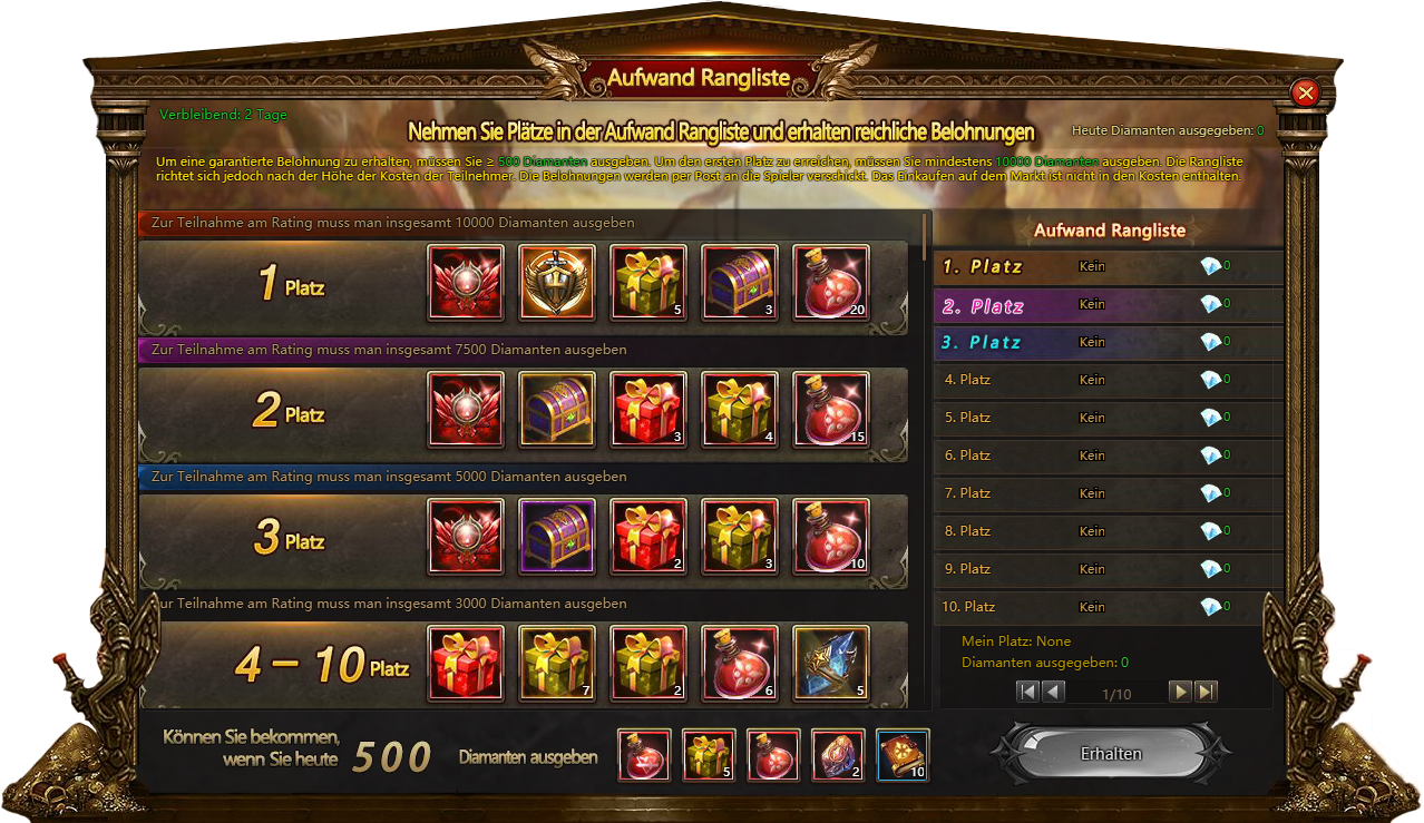 Aufwand Rangliste Event - gigantische Belohnungen für Ihre Bemühe!