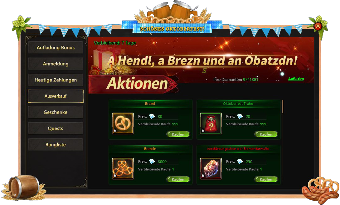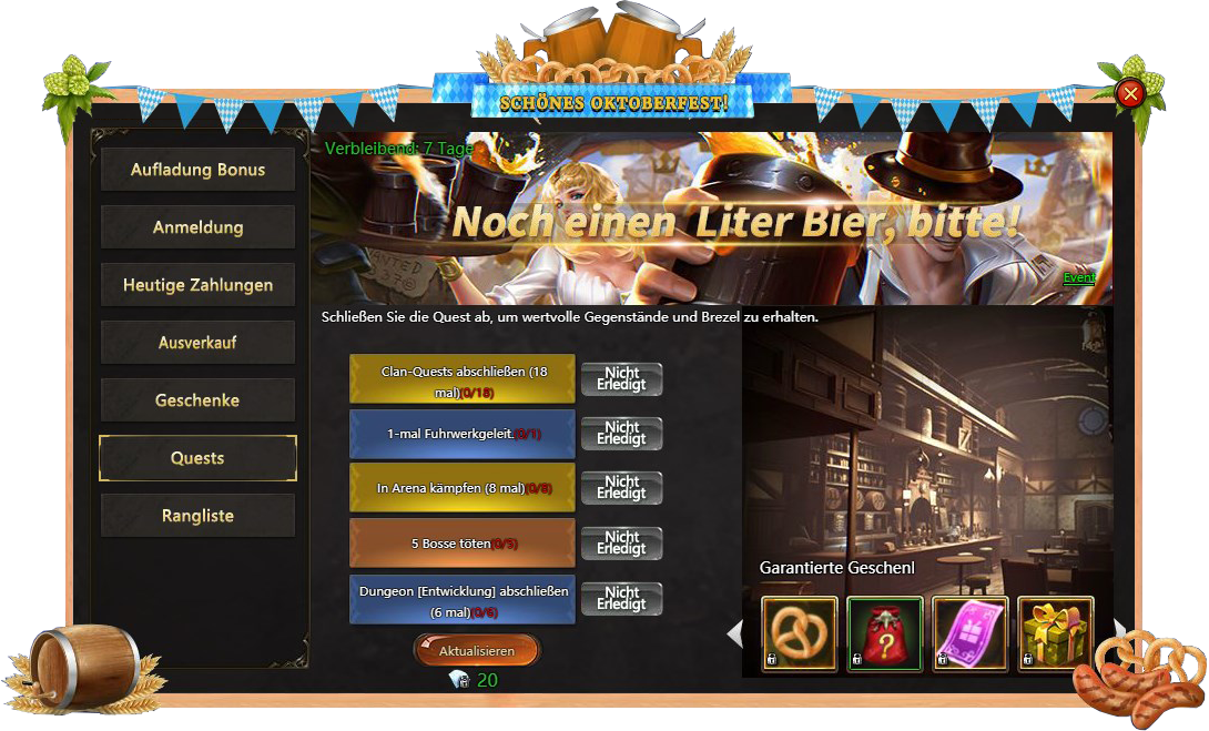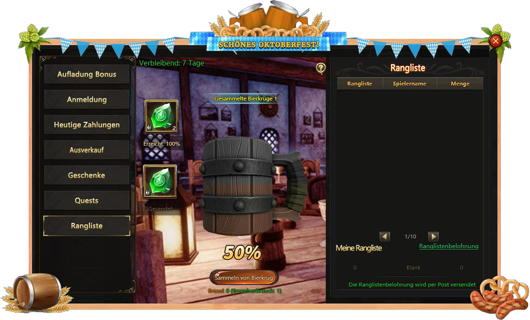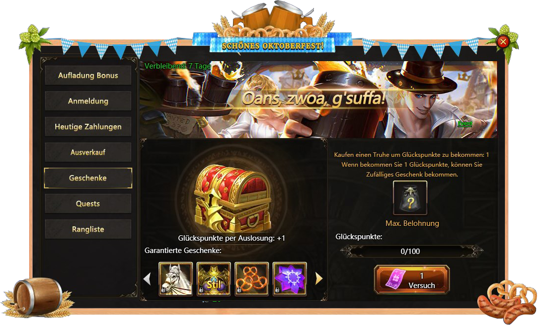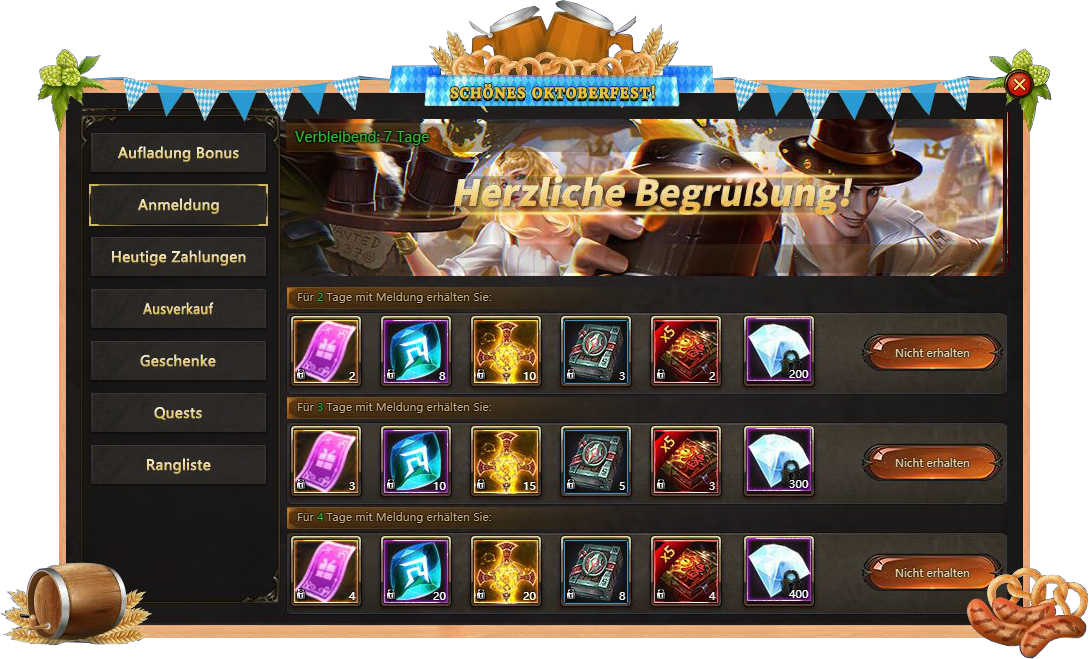 Anmeldung - besuchen Sie Oktoberfest taglich und bekommen verschiedene Belohnungen;