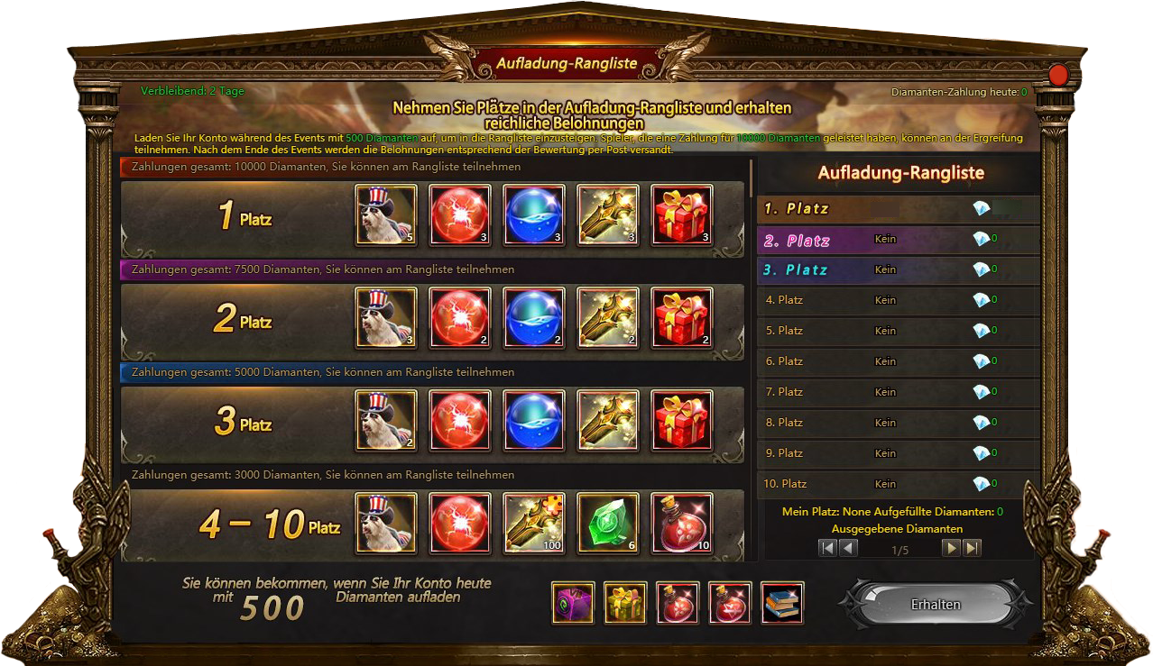 Aufladung Rangliste - erhalten Sie reichliche Belohnungen!
