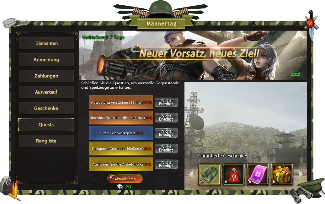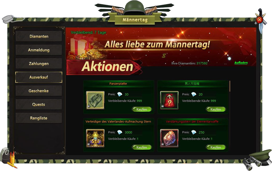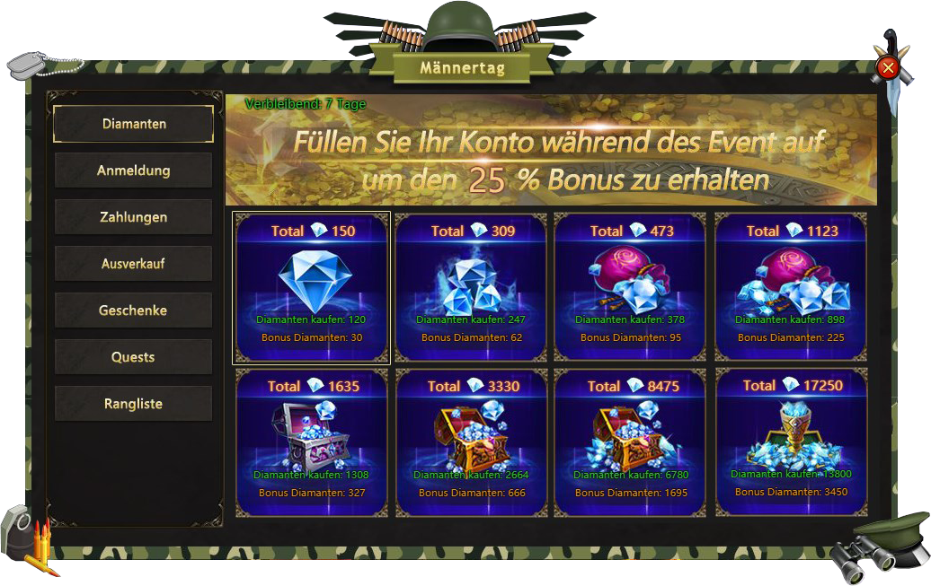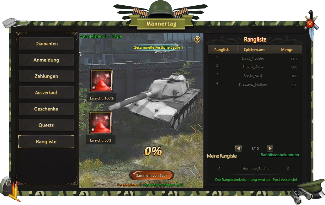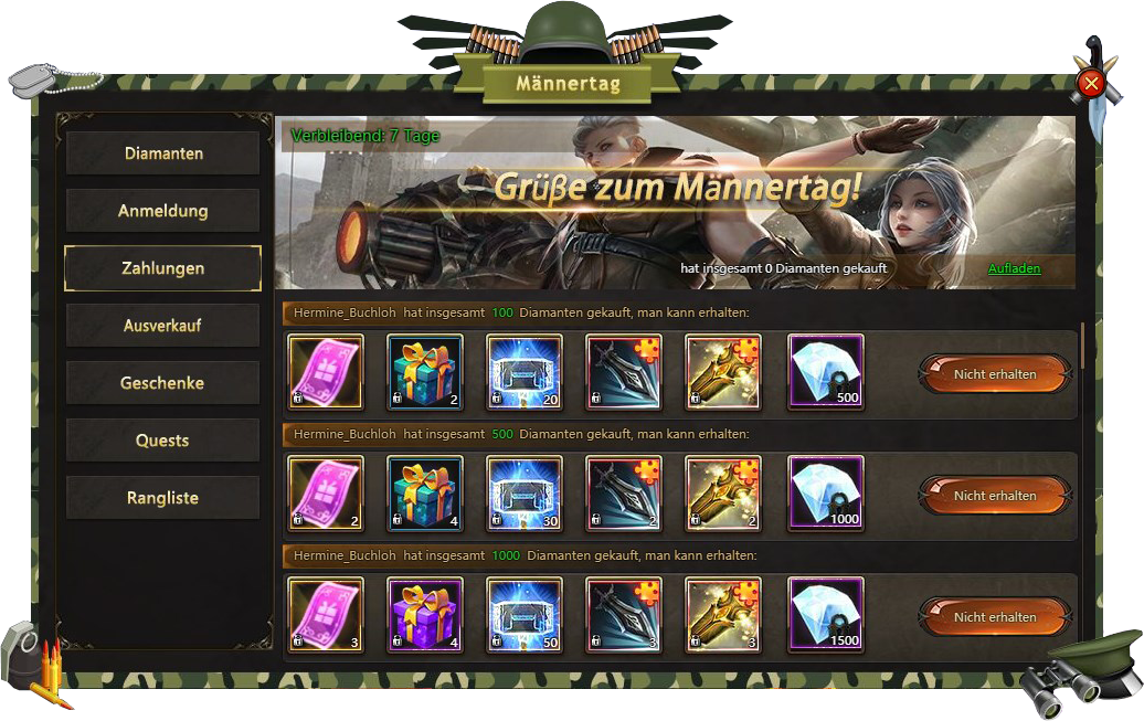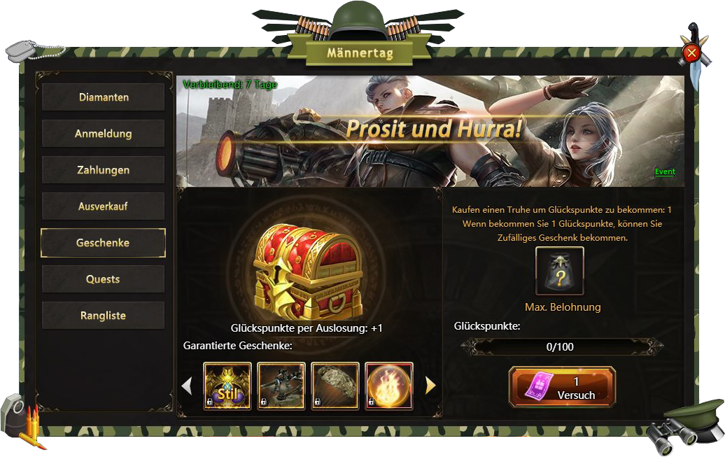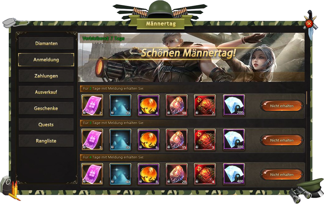 Anmeldung - besuchen Sie Männertags Fest taglich und bekommen verschiedene Belohnungen;