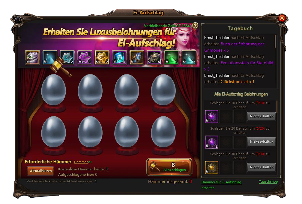 Ei-AufschlagPunktetausch, Wünsche-Loch und Aufwand Rangliste werden um 12:00 Freitags (27.03.2020) beginnen und bis 12:00 Montags (30.03.2020) dauern.