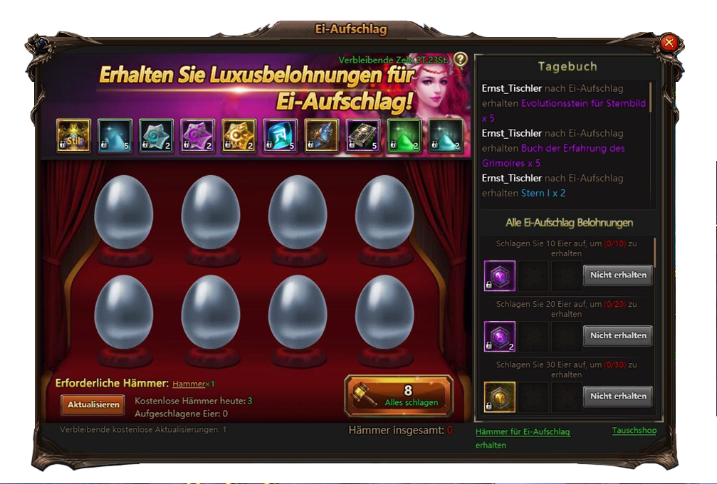 Ei-AuschlagPunktetausch, und Aufwand Rangliste werden um 12:00 Freitags (24.04.2020) beginnen und bis 12:00 Montags (27.04.2020) dauern.