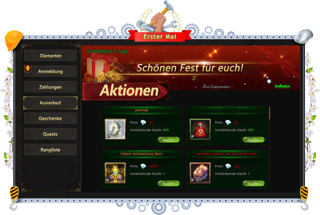 Anmeldung - besuchen Sie Tag der Arbeits Fest taglich und bekommen verschiedene Belohnungen;
