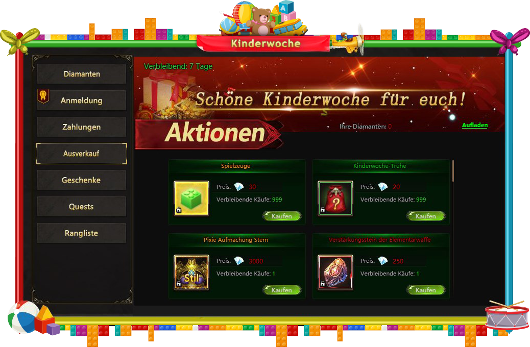 Kinderwoche Fest hat menge an interessantes Skins - StreitrossFlugelFeeWaffen und Aufmachungen!