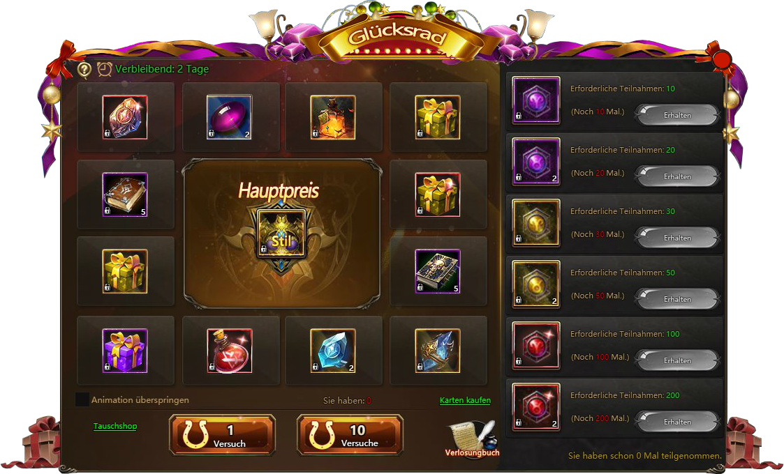 Aufladung RanglistePunktetausch, Glücksrad und Aufwand Rangliste werden um 12:00 Freitags (12.06.2020) beginnen und bis 12:00 Montags (15.06.2020) dauern.