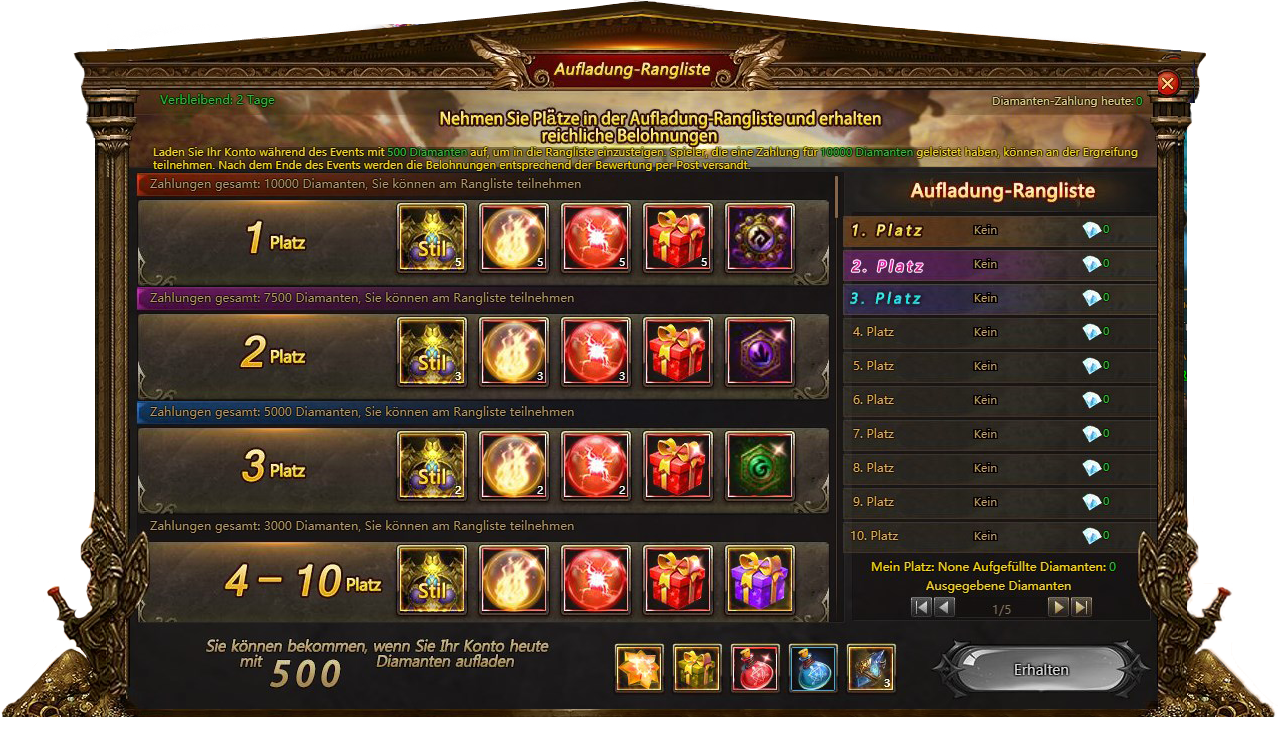 Aufladung Rangliste - mehr Diamanten = größere Belohnung!