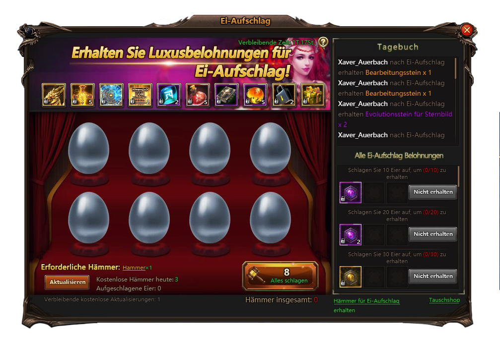 Ei-AuflschlagPunktetausch und Glückskarte werden um 12:00 Freitags (19.06.2020) beginnen und bis 12:00 Montags (22.06.2020) dauern.