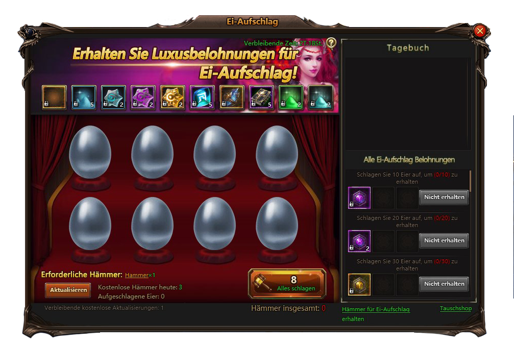 GlückkartePunktetauschEi-Aufschlag und Aufladung Rangliste werden um 12:00 (CET) Freitags (10.07.2020) beginnen und bis 12:00 Montags (13.07.2020) dauern.