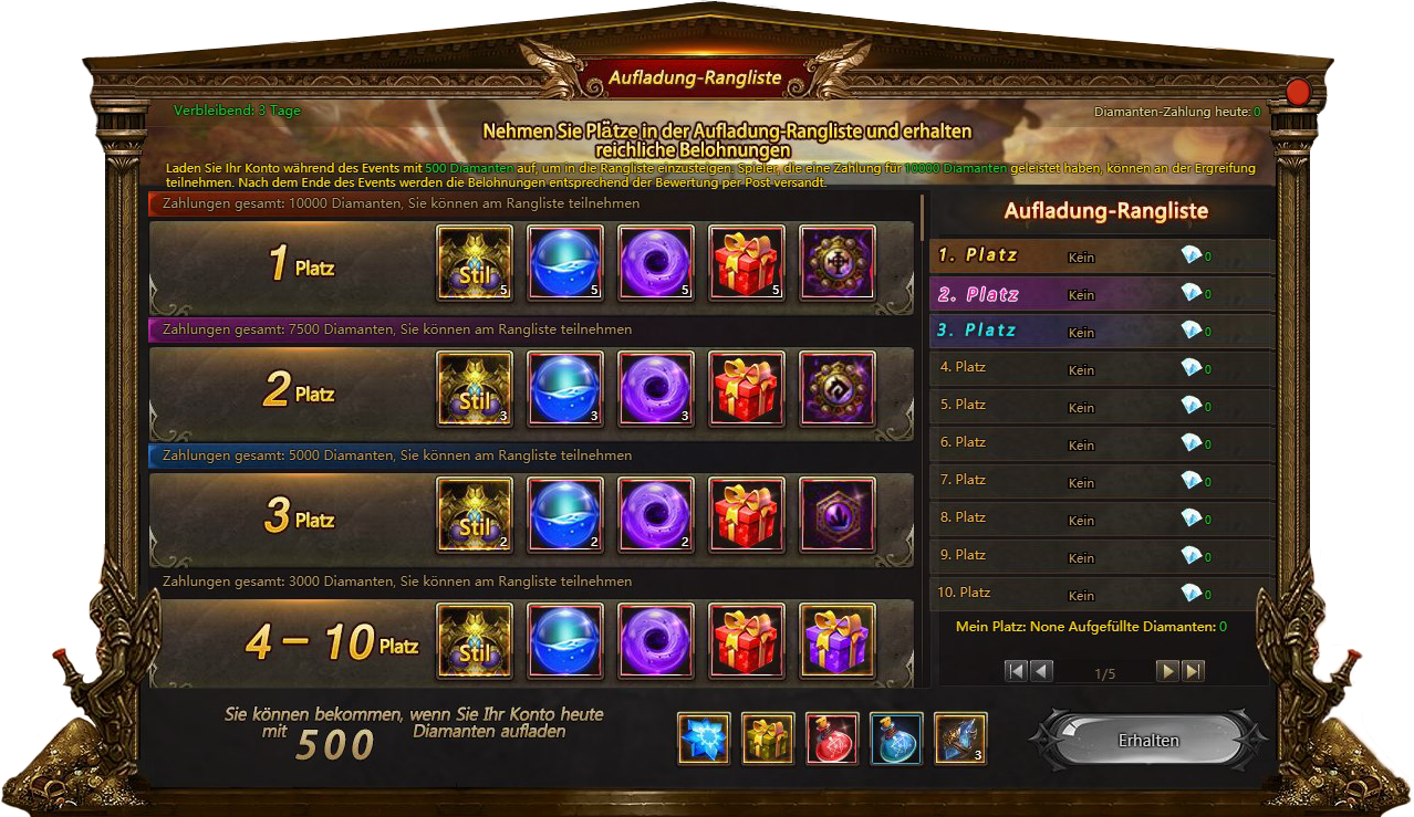 Aufladung Rangliste - bekommen Sie Belohnungen fur Diamanten gekauft!