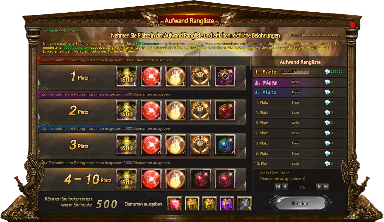 Aufwand Rangliste - bekommen Sie Belohnungen fur Diamanten gespannt!