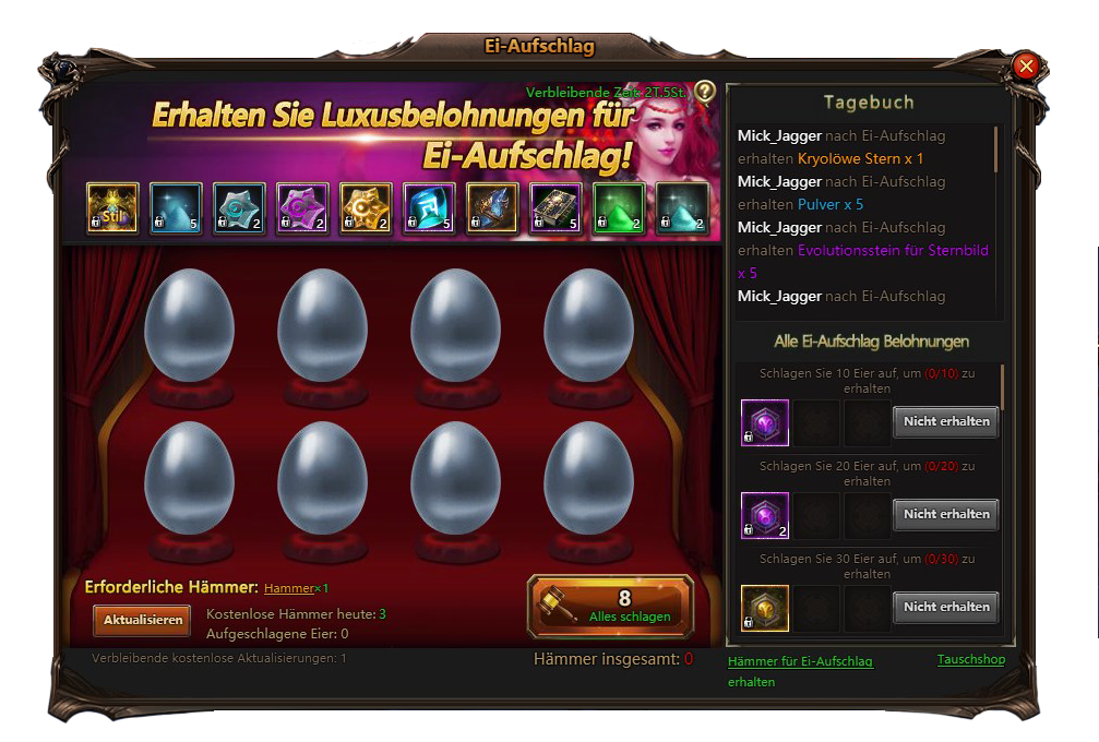 GlückkartePunktetausch und Ei-Aufschlag werden um 12:00 (CET) Freitags (14.08.2020) beginnen und bis 12:00 Montags (17.08.2020) dauern.