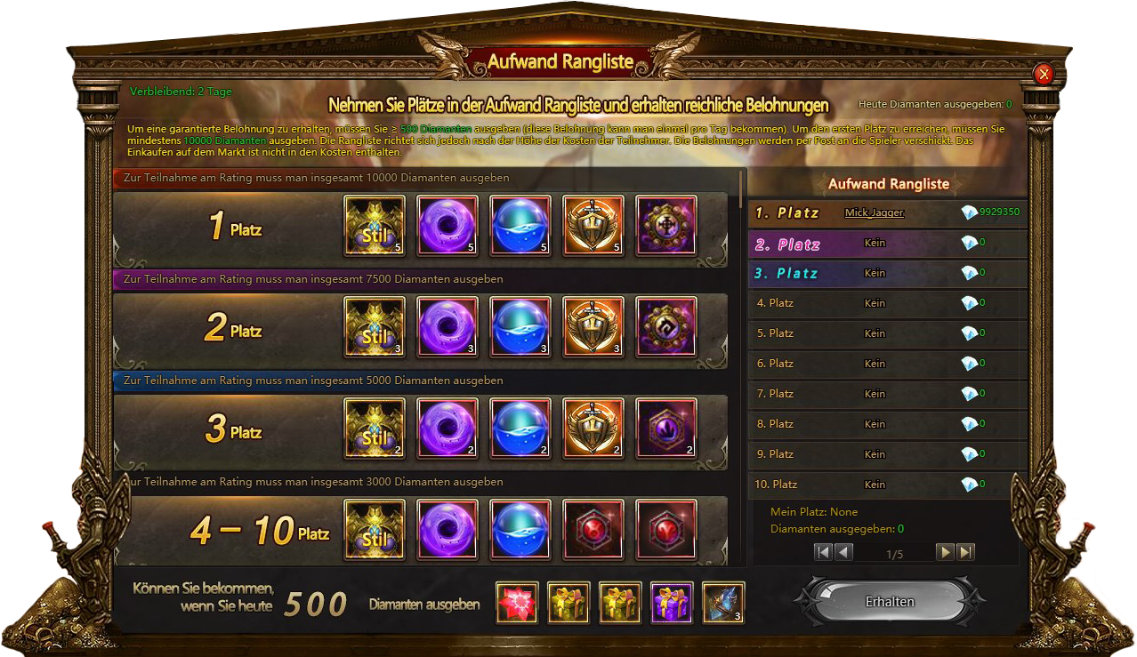 Aufwand Rangliste - mehr Diamanten - besser Belohnungen!