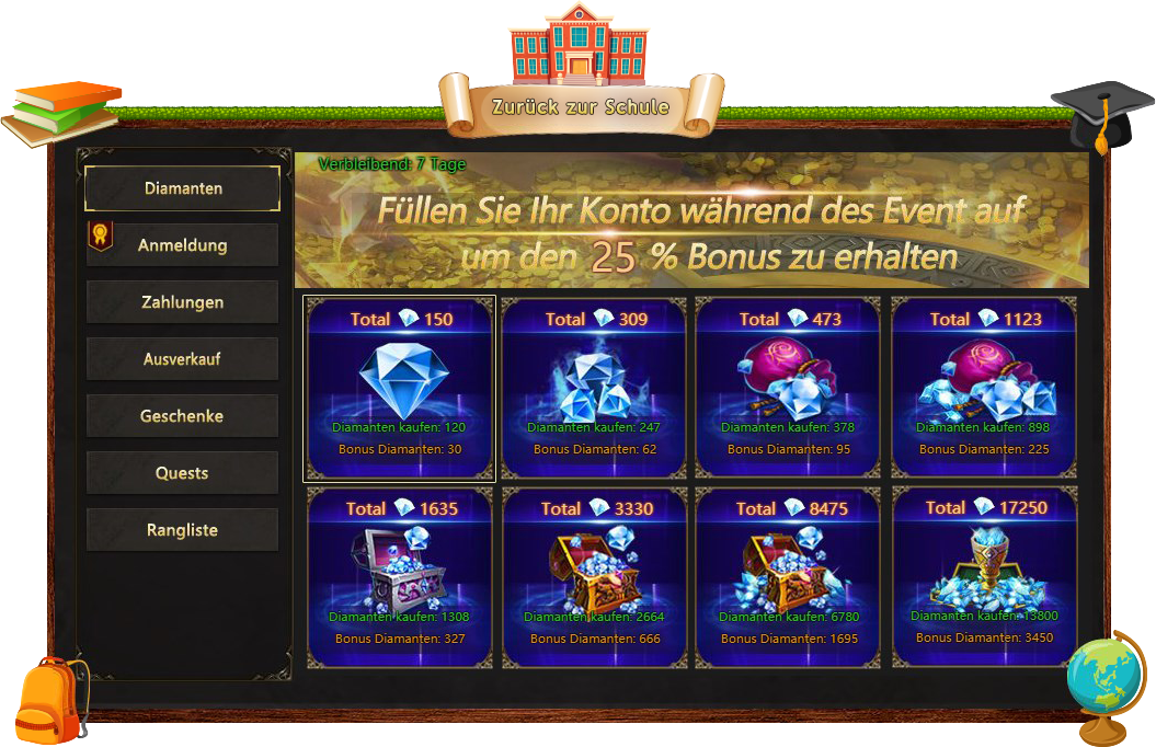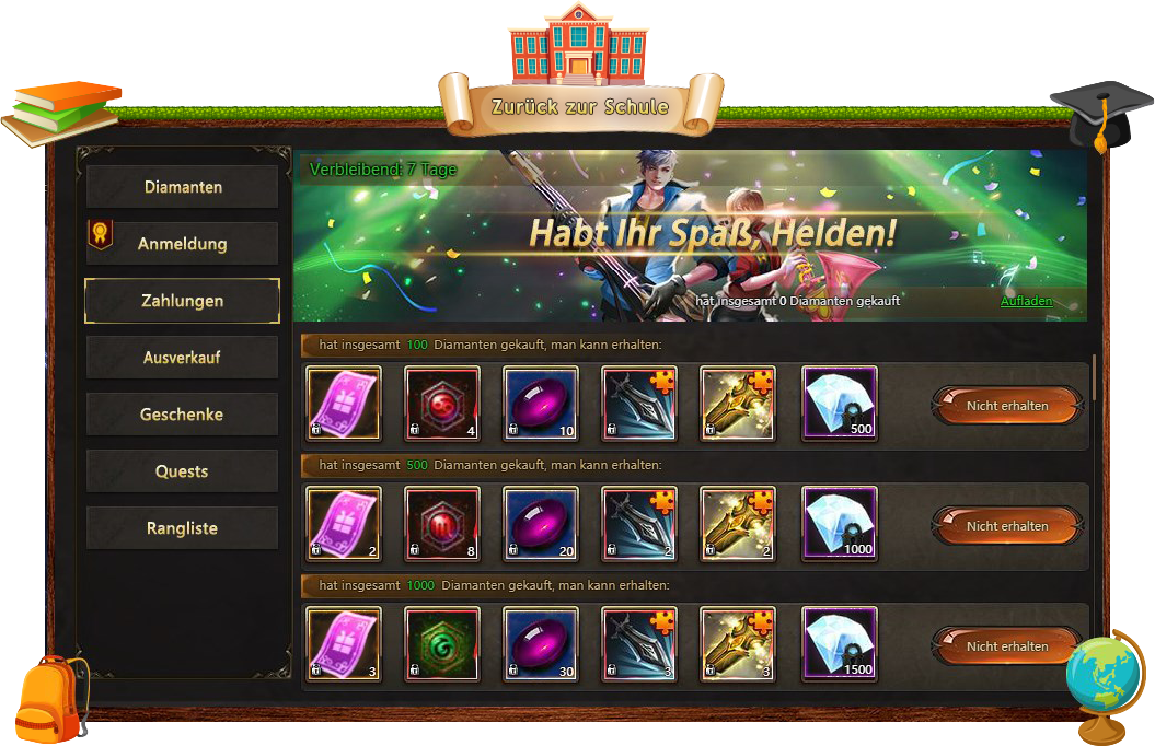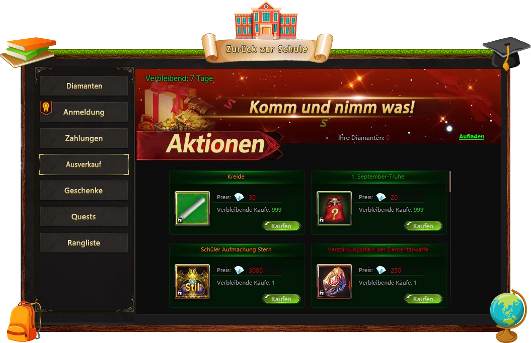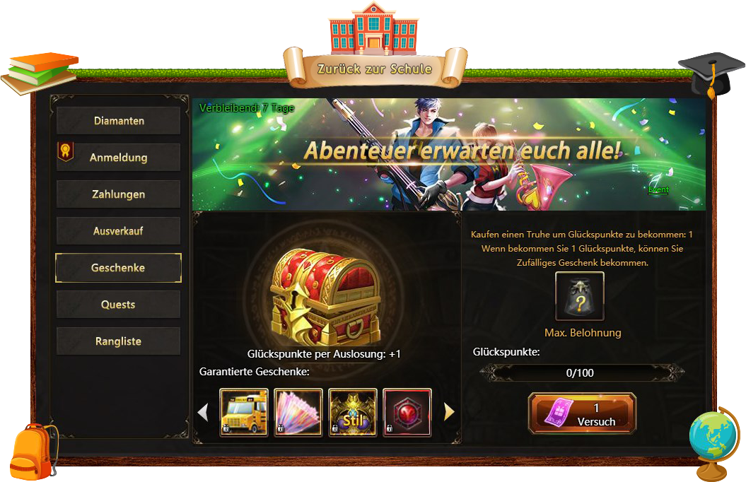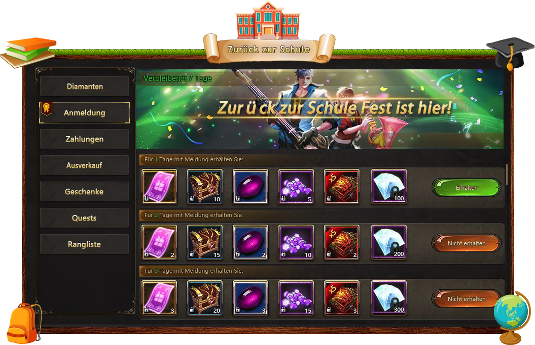 Anmeldung - besuchen Sie Zurück zur Schule Fest taglich und bekommen schone Belohnungen;