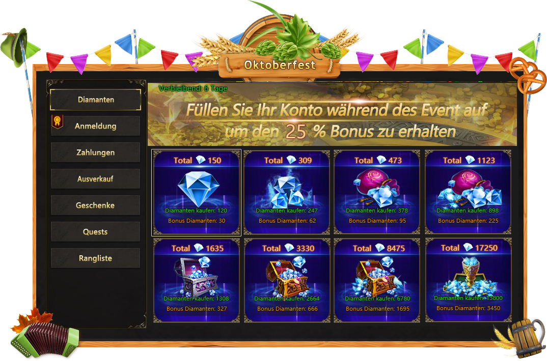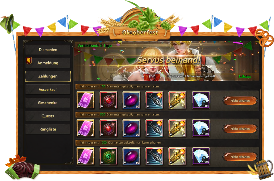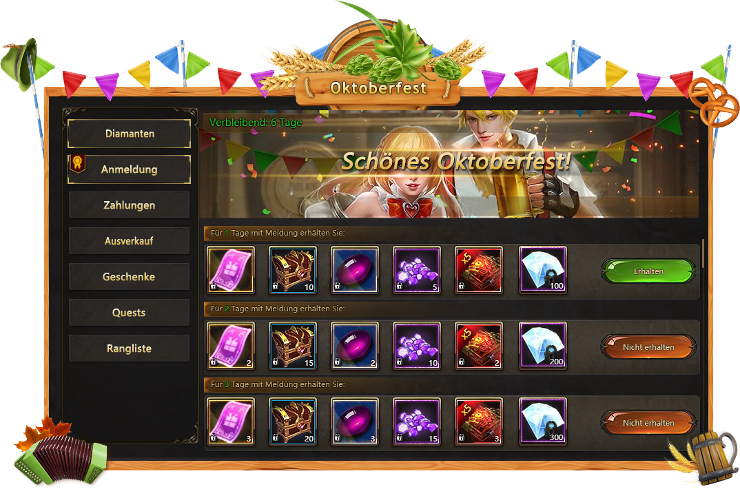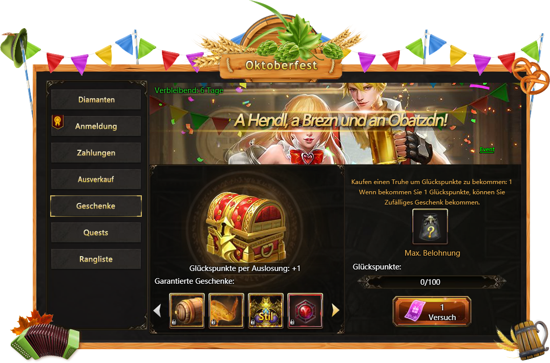 Anmeldung - besuchen Sie Oktoberfest taglich und bekommen schone Belohnungen;