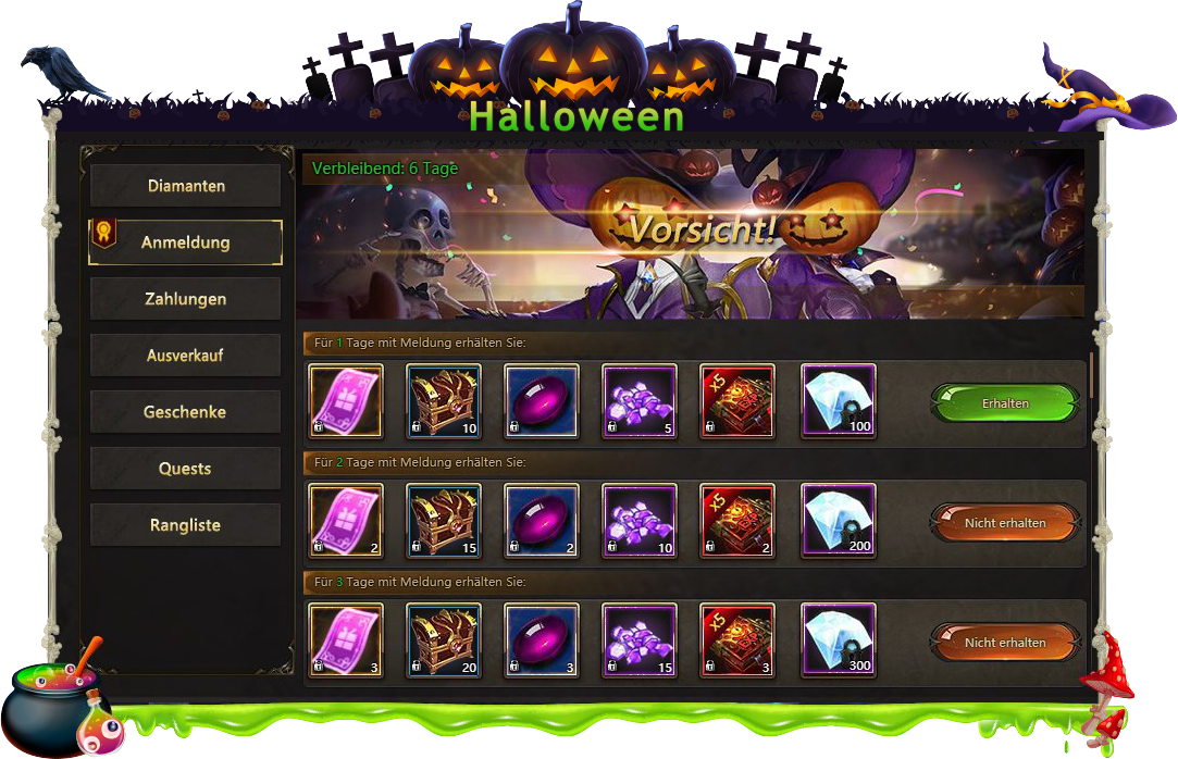 Anmeldung - besuchen Sie Halloween Fest taglich und bekommen schone Belohnungen;