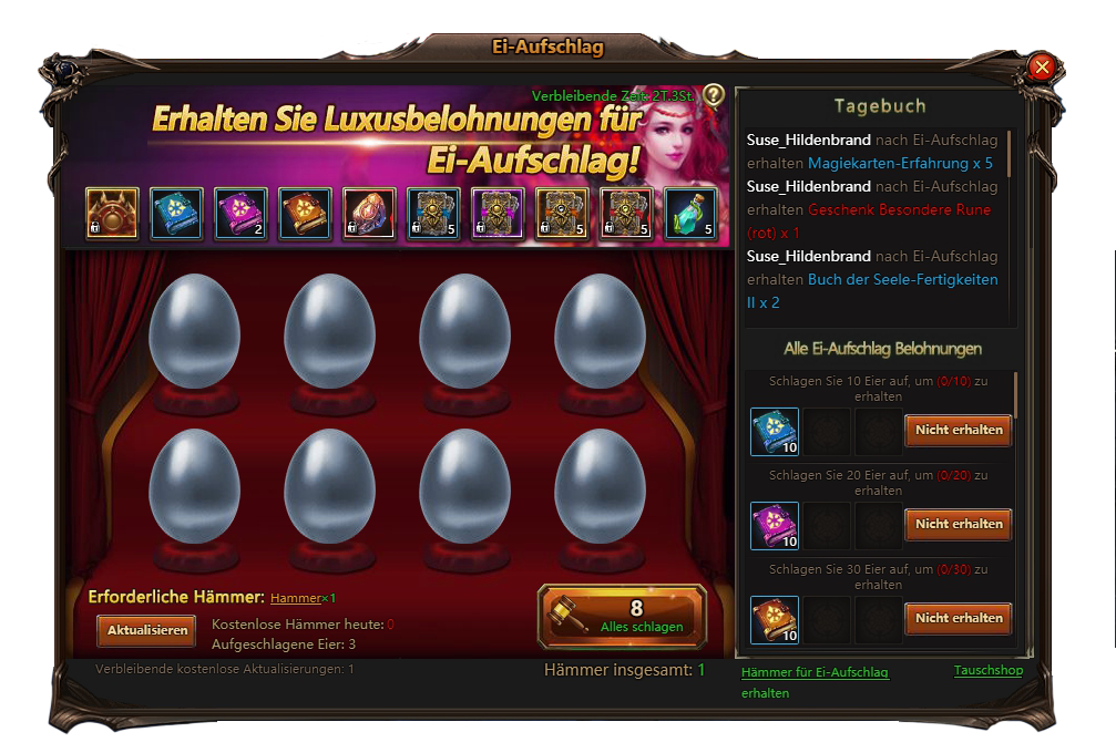Was haben wir dieswöchig - mochten Sie sagen? Glückkarte, Punktetausch, Aufladung Rangliste und Ei-Aufschlag, werden wir antworten!