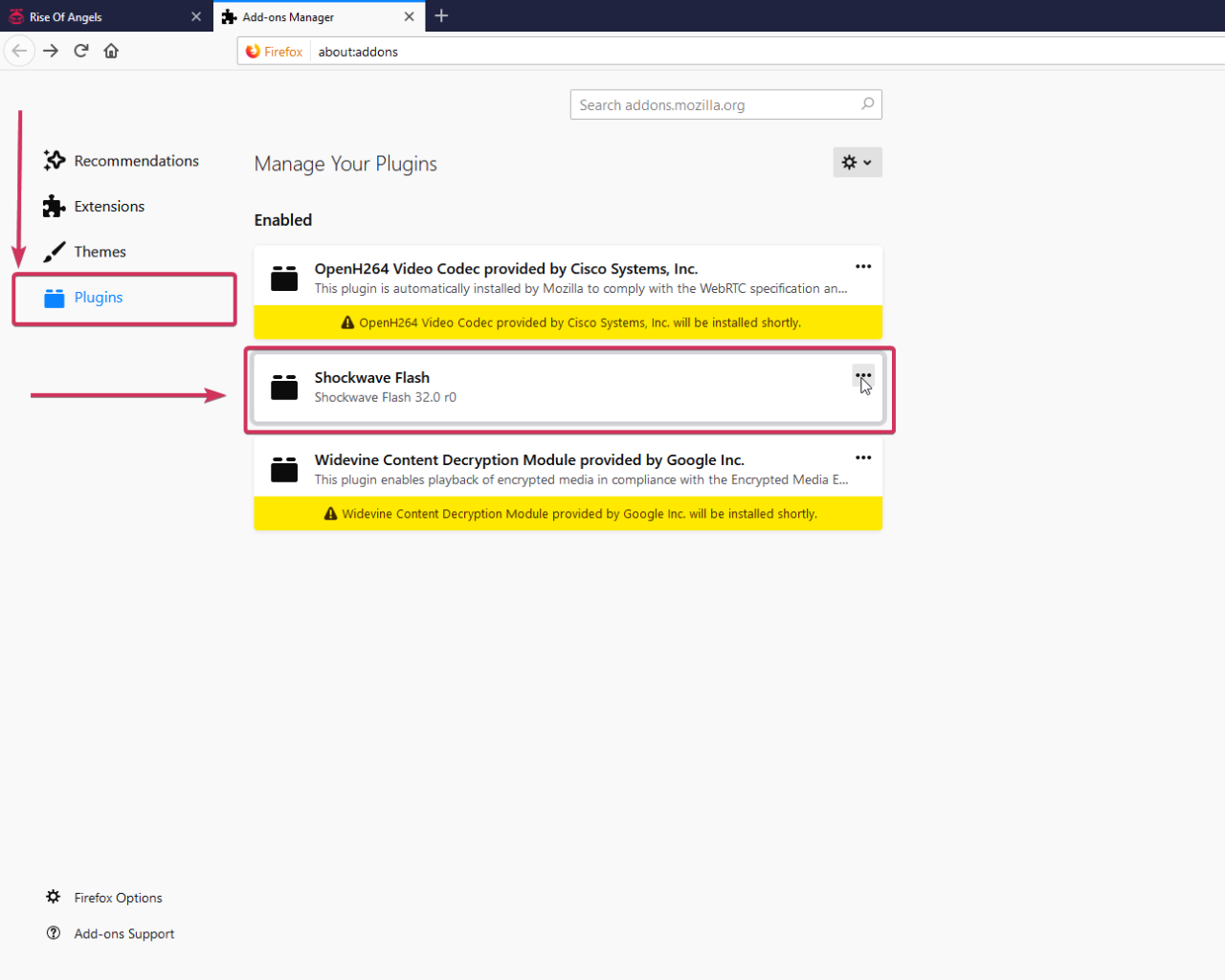 2. Go to "Plugins" tab. Click onto the dots icon in "Shockwave Flash" section: