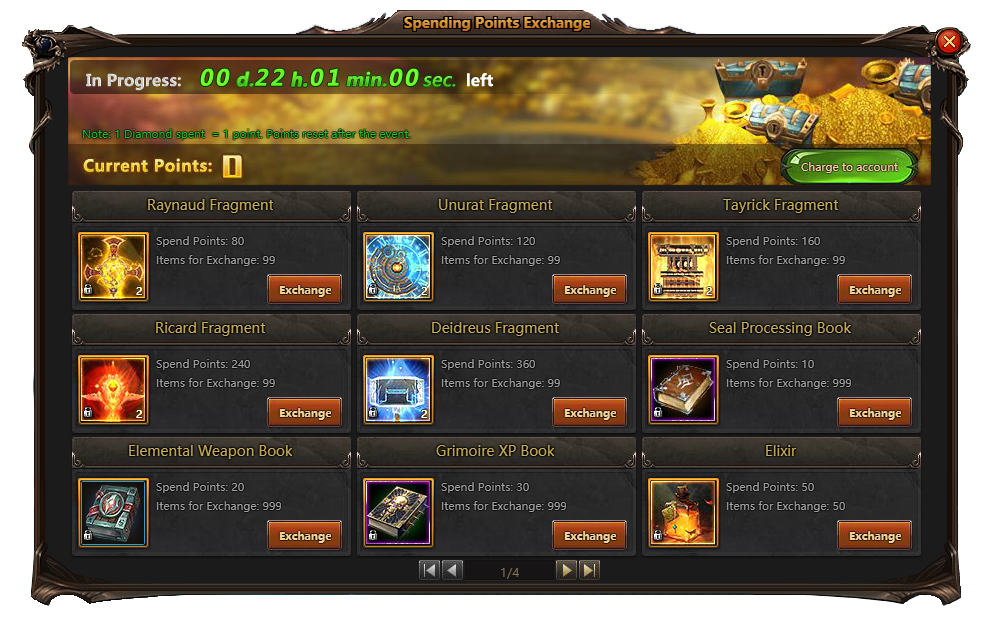 • Elemental Weapon Book per 20 points; 999 exchanges