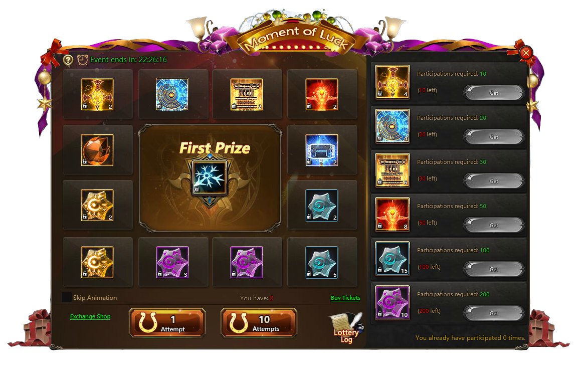Starting from 5:00 am 06.14.2019 till 11:59 pm 06.16.2019 we run Moment of luck event. Test your luck to win a broad variety of valuable trophies.