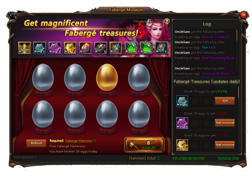 By purchasing the Faberge hammer you get Lucky key. Use Luck Keys to buy items you want in Exchange Store: