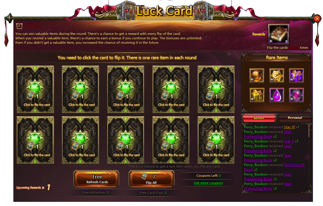 Starting from 7:00 am (EST) 08.16.2019 till 07:00 pm (EST) 08.19.2019 Luck Card runs. Test your luck to win a broad variety of valuable trophies.